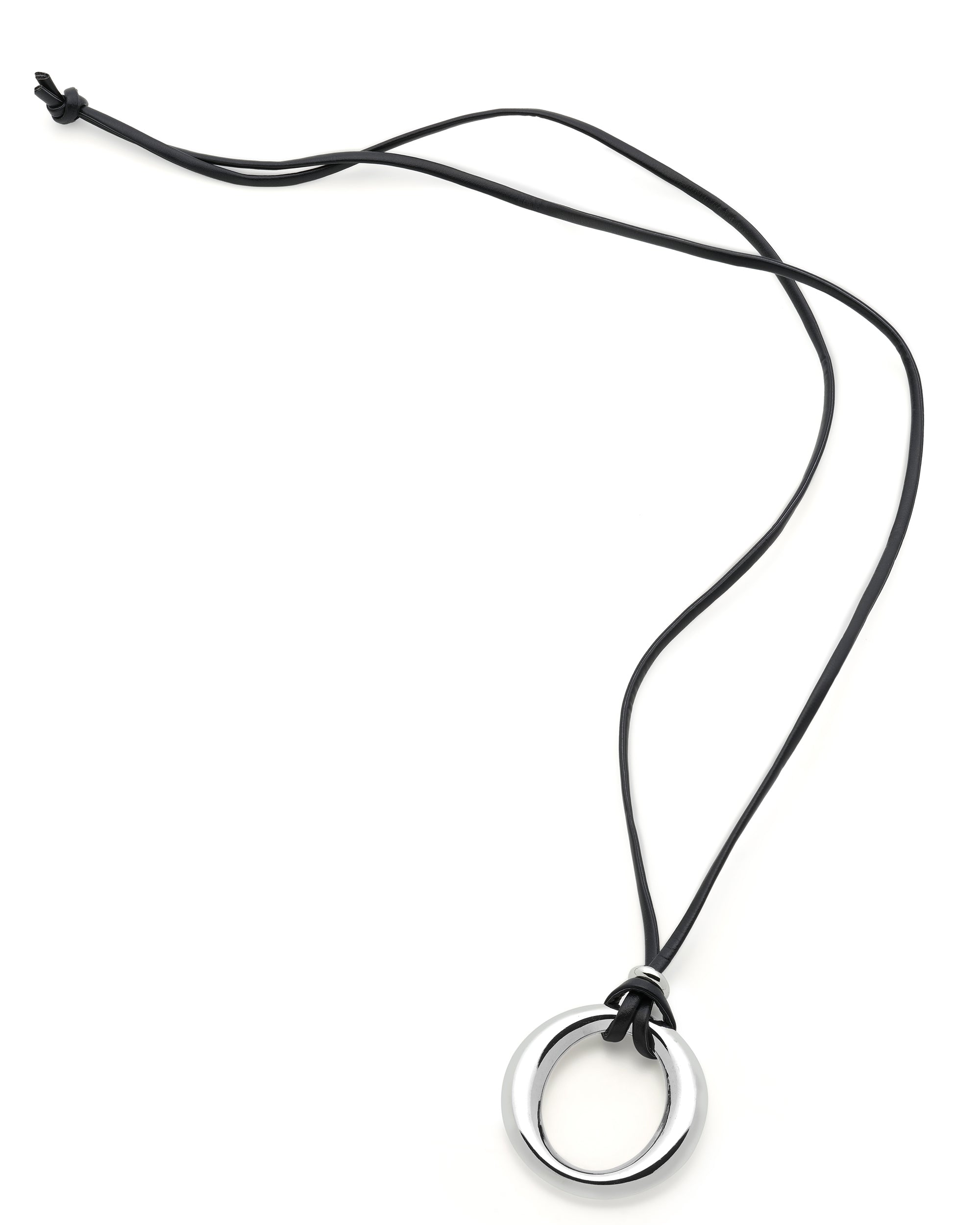 1975 Collection - Black Leather & Silver Pendant Necklace