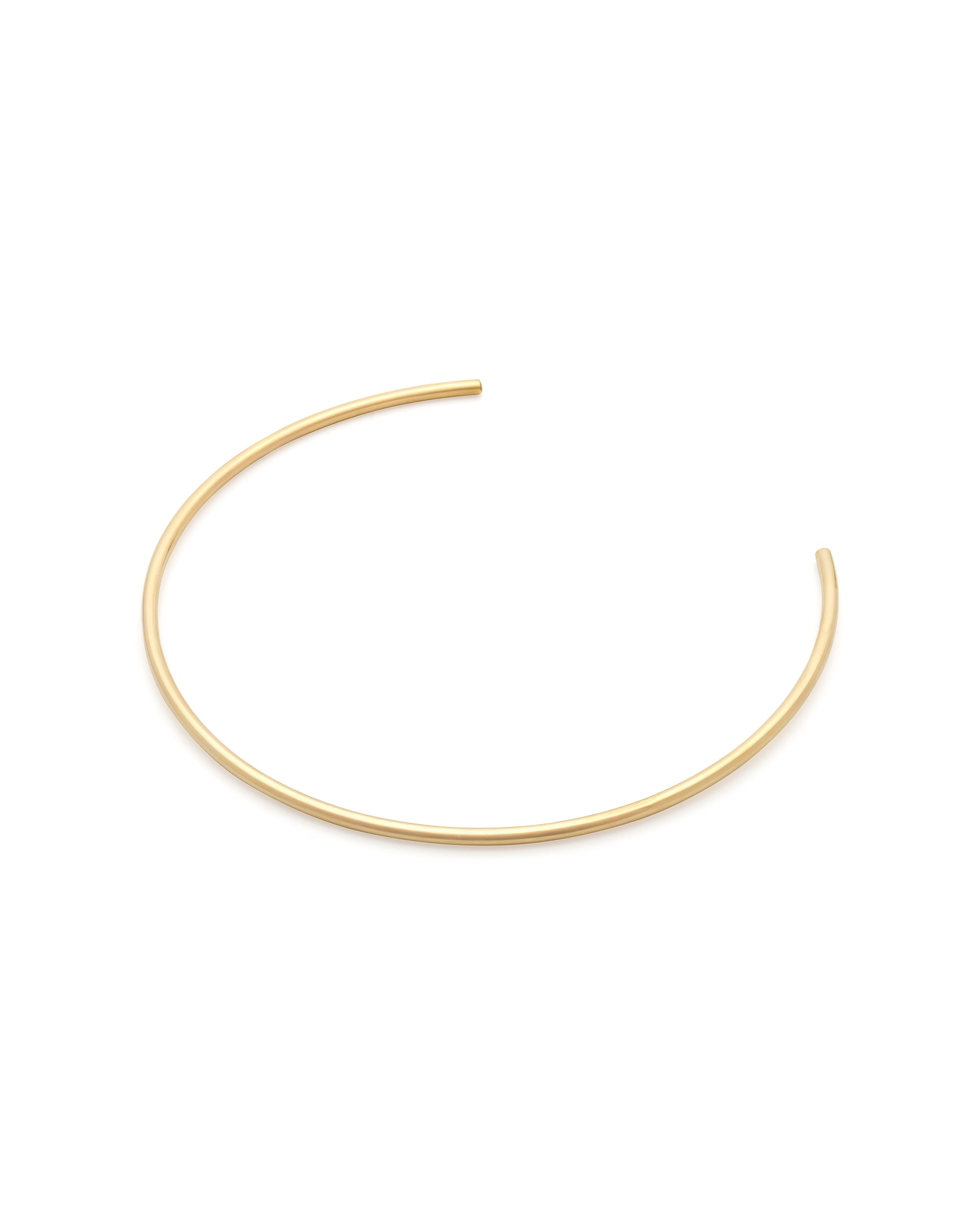 A refined choker designed with clean lines and fluid form. Crafted in polished gold or silver, this sculpted piece sits softly along the collarbone, catching the light with understated shine.