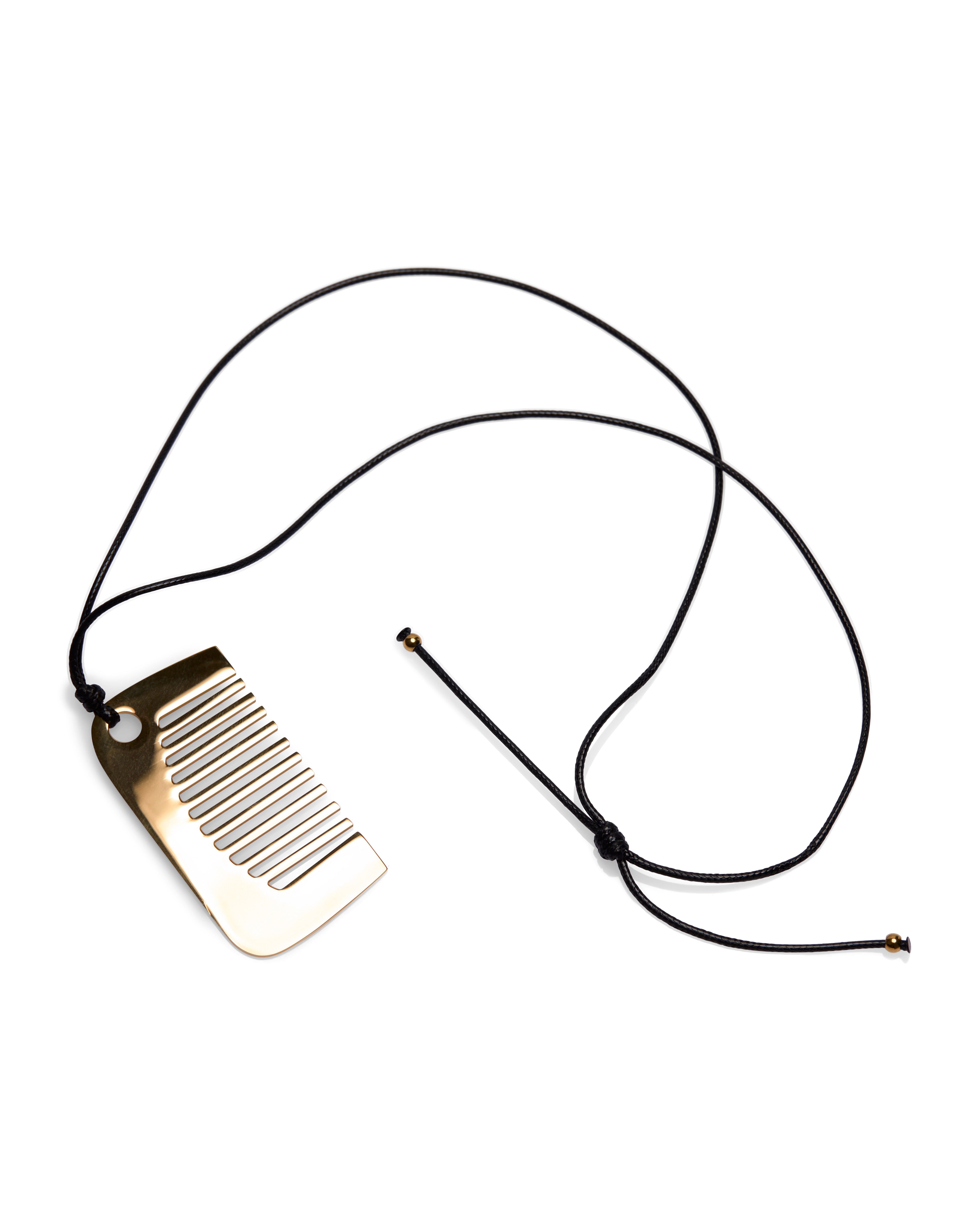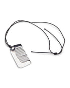 This piece reimagines a familiar object through a sculptural, minimalist lens. The comb-shaped pendant is defined by clean lines and deliberate spacing, creating a graphic silhouette that feels both modern and quietly nostalgic.