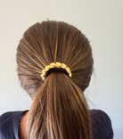 This elegant Gold Twist Hair Tie is the perfect fusion of style and functionality. Featuring a sleek black elastic band adorned with a polished gold twisted design, this accessory adds a touch of sophistication to your everyday hairstyles. Ideal for ponytails, buns, or securing hair with a chic flair, the gold accent elevates a simple hair tie into a statement piece. Lightweight and durable, it ensures a secure hold while enhancing your look with a subtle touch of glamour. Perfect for both casual and formal occasions, this versatile hair tie is a must-have accessory for any collection.