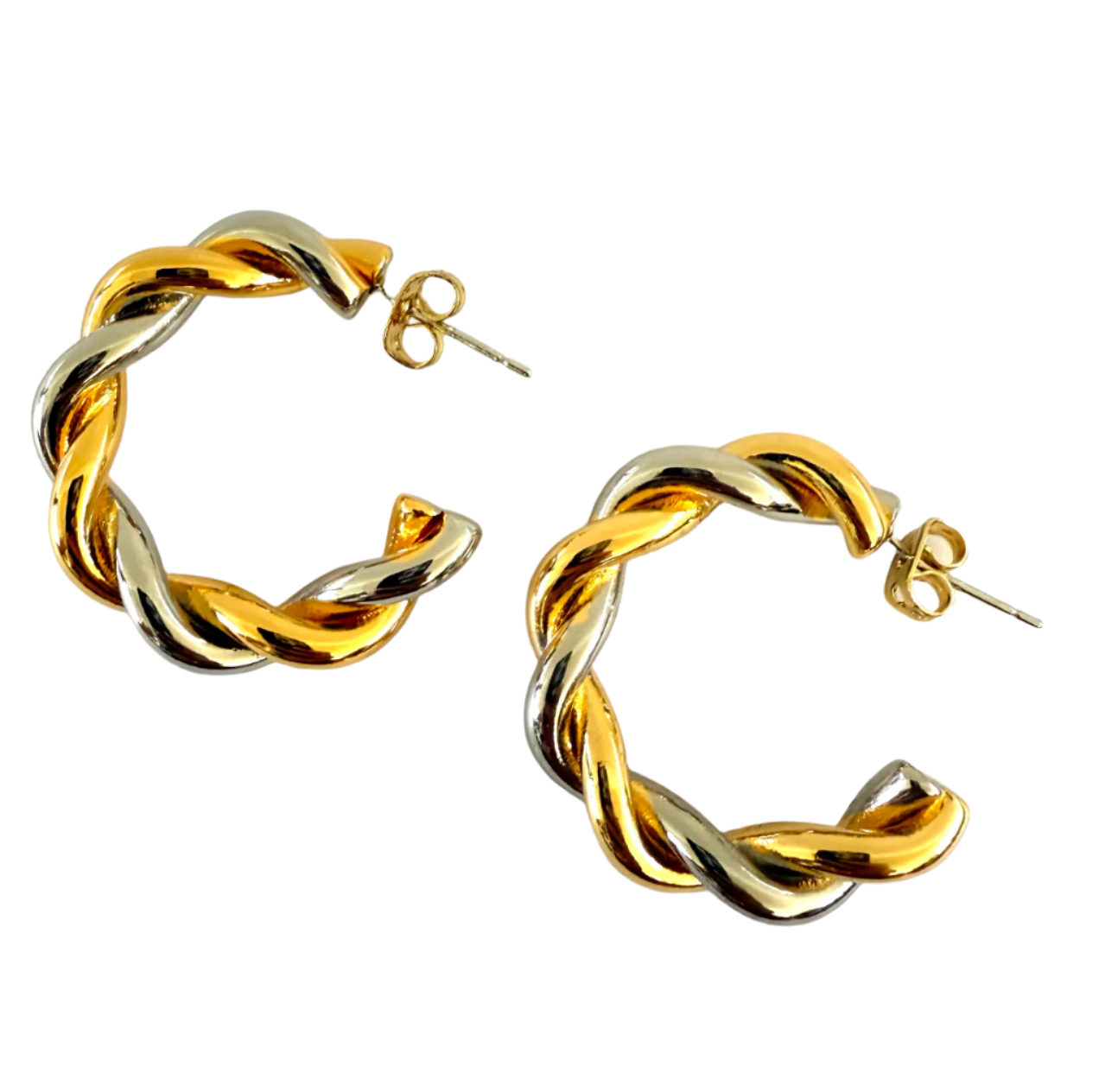 Two-Tone Twisted Hoop Earrings | Stylish Gold and Silver Jewellery